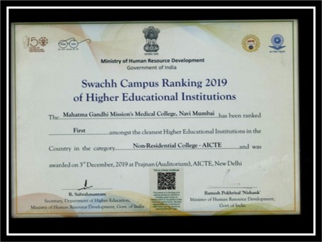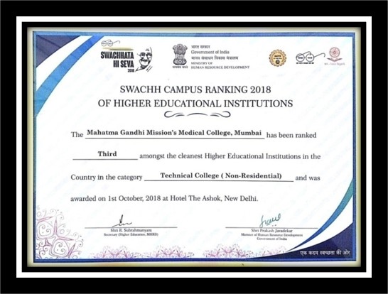 Rank 3rd (National Level) in Swachh Campus Ranking 2018 of Higher Education Institution by Ministry of